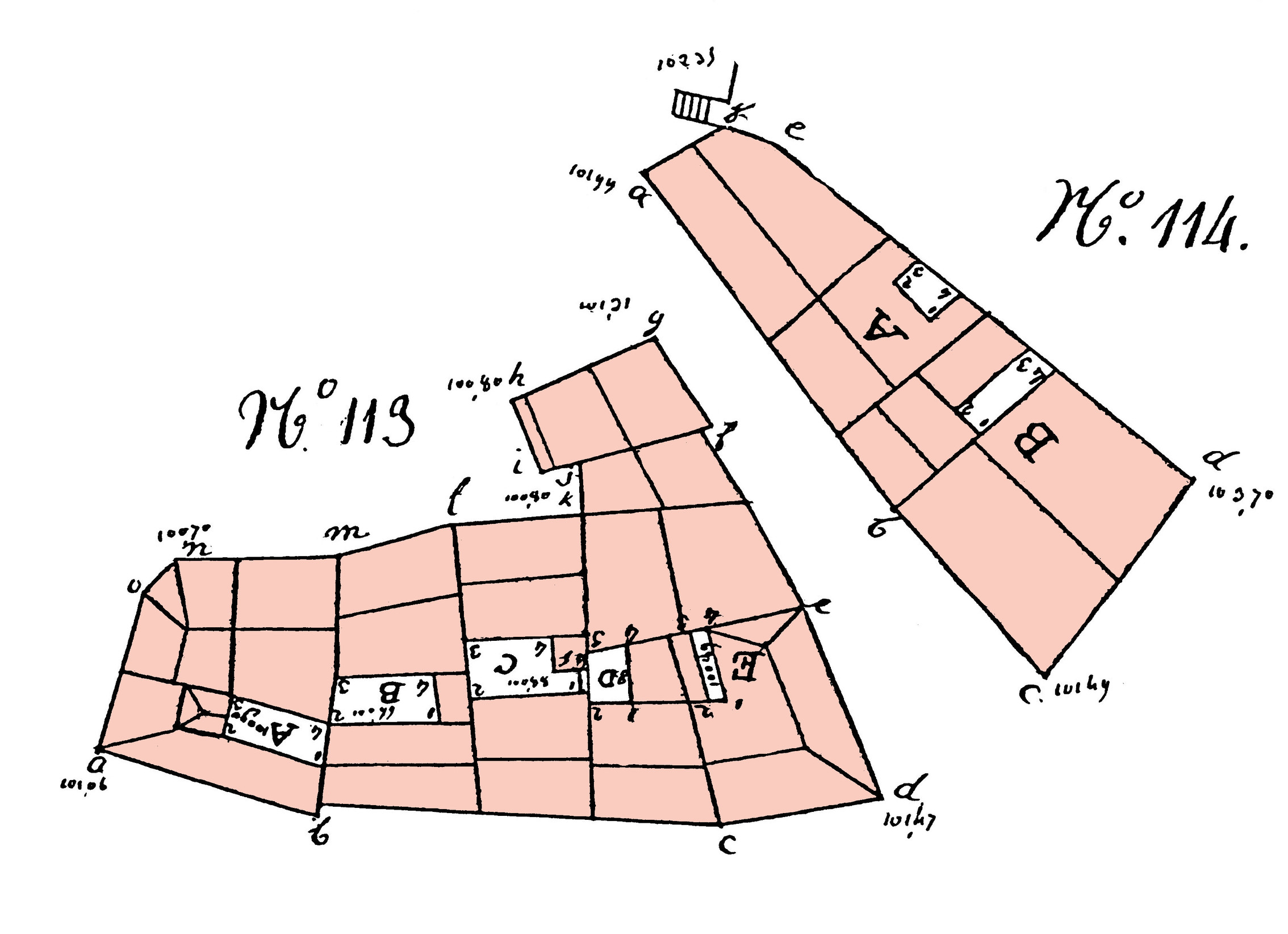 Elévations pour le plan-relief de 1830, îlot 114 (plan de l’îlot, © Musée des Plans-relief)